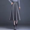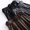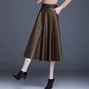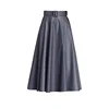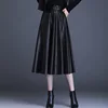 Women High Waist Black Mid-length Leather Skirts Look Thin Leisure New Style A-line Pleated Skirt Female Skirt Umbrella Skirt