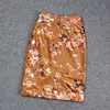 Spring New Designer Women's High Quality Genuine Leather floral Print Skirt Hot Chic High-rise Leather Pencil Skirt C152