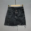 Irregular Denim Skirt for Woman 2022 Spring Summer New High Waist Slimming Anti-Emptied A- Line Sheath Wrapped Skirts Black Blue