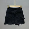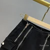 Zipper Split Fork Black Skirt for Women 2022 Spring Summer New High Waist Cotton Elastic Slimming Anti-Emptied A- Line Skirts