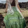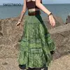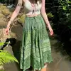 2021 European and American Style Autumn and Winter Green Long Skirt New Style Women's Street Print Stitching Skirt