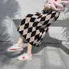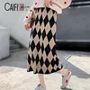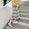 CAIFISH Knitted Long Maxi Skirt Women Autumn Winter Korean Fashion Skirts All-match A Line High Waisted Midi Plaid Skirt QT1362