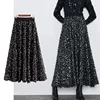 ZA 2022 Women Mid-Calf Sequined Skirt Spring Autumn High Waist Casual Skirts Female Elegant Fashion Party A-line Skirt Women