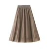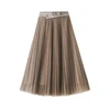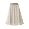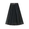 New Autumn Winter Women Pleated Midi Skirts High Waist Fashion Casual Tulle Korean Elegant With Belt Female Clothes Streetwear