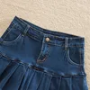 Denim Skirt With Ruffles 6XL 7XL Harajuku Y2K Jeans Skater Woman High Waist Bottom Female Casual Pleated Micro Mini Short Jurken