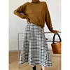 Autumn Winter 2021 High Waist Casual Skirt Women's Plaid A-line Mid-Calf Skirt