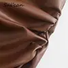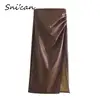 Solid Pu Leather Split Skirt Za 2021 Women A Line Ruched High Slit Midi Skirts Autumn Winter Jupe Femme Fashion Faldas Mujer New