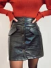 WannaThis Fashion Women Faux PU Leather Skirt Crocodile Pattern Fall Button Skinny Sexy Elegant Black Solid E Gril Wear 2021 New