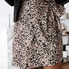 Women High Waist Leopard Print Mini Wrap Skirt Autumn Casual Bandage Faldas Female Elegant Irregular Short Skirts