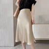 Silk Satin Skirts for Women High Waisted Skirt 2021 Women A-Line Elegant Skirts Summer Pink Midi Skirt New Korean Style