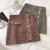 Tweed Skirts for Women Solid High Waist Slimming Skirts Autumn Spring 2021 Buttons Double Breasted Tweed Wool Mini Skirt