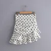 Stylish Chic Polka Dot Print Ruched Asymmetrical Slim Mini Skirt Za 2022 Fashion Women Skirts Casual Streetwear Jupe Femme