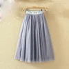 2021 Autumn Summer Vintage Tulle Skirt Women Elastic High Waist Mesh Skirts Long Pleated Tutu Skirt Female Jupe Longue