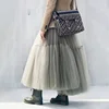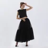 Vintage Gothic Black White Pleated Long Tulle Skirt Tutu Femme High Waisted Runway Soft Mesh Skirts Womens 2021 Jupe