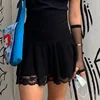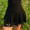 Sweetown Black Goth Y2K Pleated Skirt Woman Punk Style Dark Academia Aesthetic Vintage Mini Skirts Lace Edge High Waist Saias