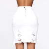 Asymmetric Hole Denim Midi Skirt With Tassel Streetwear High Waist Wash Distressed For Women Bodycon Ripped Jeans Skirt