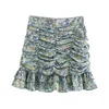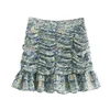 Women Chic Fashion With Ruffled Pleated Printed Mini Skirts Vintage High Waist Back Zipper Female Skirts Mujer