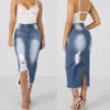 Women Strench High Waist Sexy Club Skirt Summer Fashion High Waist Skirt Ripped Destroyed Bodycon Street Style Denim Jeans Skirt