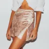 High Waist Skirt Solid PU Leather Skirt Stretch Women Sexy Party Floral Print Zipper Slim High Waist Satin Split Mini Skirt