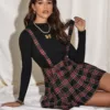 JAYCOSIN Women High Waist Pleated Skirt Sweet Cute Girl Fashion Plaid Pleated A-Line Skirt Strap High Waist Short Skirt Harajuku