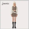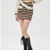 BEENLE Two-piece autumn and winter American fashion retro plaid hot girl sexy fur stitching jacket a-line skirt short skirt suit