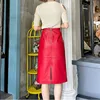 Autumn New Designer Women's High-rise Leather Skirts High Quality Genuine Leather Pencil Skirt C419