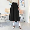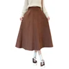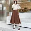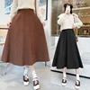 Qiukichonson Autumn Winter High Waist Brown Black Skirt Women Korean Style Elegant A-Line Midi Long Skirts Jupon