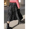 Velvet Pleated Temperamental Vertical Skirt Women's 2021 Winter High-waisted Loose Skirt Show Thin Long Skirt Fashion