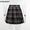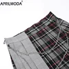 Preppy Style Girls Mini Pleated Skirt Plaid Print Kawaii Black Patchwork High Waist Summer Hip Hop Women Punk Gothic Streetwear