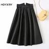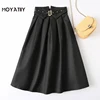 MOYATIIY Women 2022 Fashion with Belt Pleated Midi Skirt Vintage A-Line Black Skirts Side Zipper Female Bottoms