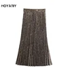 MOYATIIY Women 2022 Fashion Snake Print Pleated Midi Skirt Highstreet Style Animal Pattern PU Leather Skirts Female Bottoms