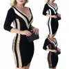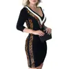 Women Dress Spring Autumn Patchwork Leopard Sequin Sexy V-Neck Bodycon Dress Casual Long Sleeve Above Knee Mini Dress for Party