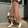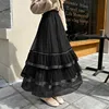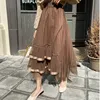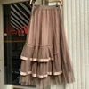 Beading Midi Long Skirts Womens Mesh Skirt 2022 Lolita Spring High Waisted Asymmetrical High Low Ruched Ruffle Skirts rok