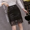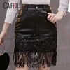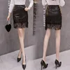 CAIFISH Black Fringed Mesh Leather Skirt Sequined Punk Style Lace Embroidered Short Skirt Summer Stitching Bodycon Skirt QT1380