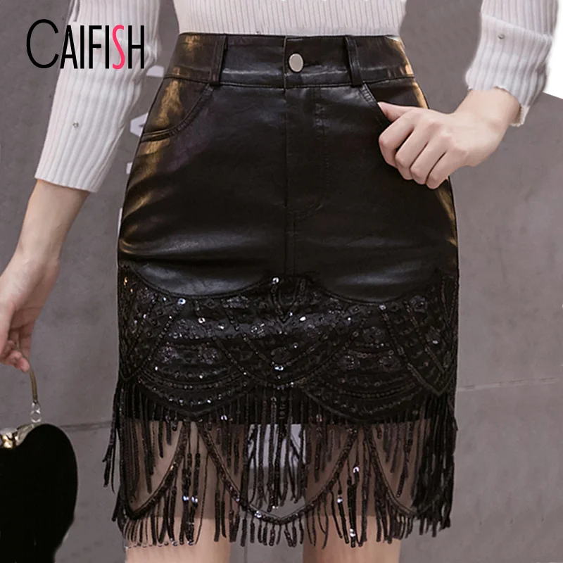 https://www.vogueparade.com/shopping/EN/349/1/1005003688183827/caifish-black-fringed-mesh-leather-skirt-sequined-punk-style-lace-embroidered-short-skirt-summer-stitching-bodycon-skirt-qt1380//