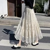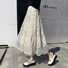 Qiukichonson Crochet Lace Women Long Skirts 2022 New Spring High Waisted Korean Fashion Casual Ladies Beige Black Maxi Skirt