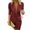 2022 Women Dress Sexy Deep V Neck Draped Slim Slit Mini Dress Spring Autumn Solid Office Bodycon Dresses for Night Club