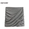 MOYATIIY Women 2022 Fashion Pleated Winter Thick Mini Skirts Elegant Ruffle Wave Gray Skirts with Zipper Female Bottoms