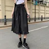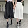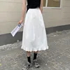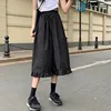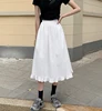 Summer Women Skirts White Black Japanese Style Soft Girl Aesthetic High Waist A-Line Kawaii Frilly Hem Ruffle Long Midi Skirt