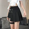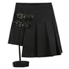 Harajuku Punk Gothic Y2K Black Skirts Women High Waist Irregular Bandage Mini Skirt Kawaii Female Streetwear Buckle Rock Skater