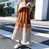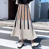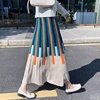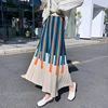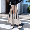 Qiukichonson Contrast Color Knitted Pleated Skirt Women's 2022 Spring Autumn Korean Style Casual Striped High Waisted Long Skirt