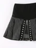 HEYounGIRL Goth Rivets Zipper Striped Print Girls Shorts Skirts Aesthetic Dark Academia Black Mini Skirt Kawaii Clubwear Outfits