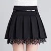 Women Lace Hem Mini Pleated A-Line Skirt With Belt Korean Fashion Slim Sexy High Waist Skirt Black Mini Skirts Spring Summer