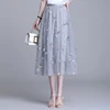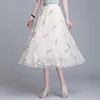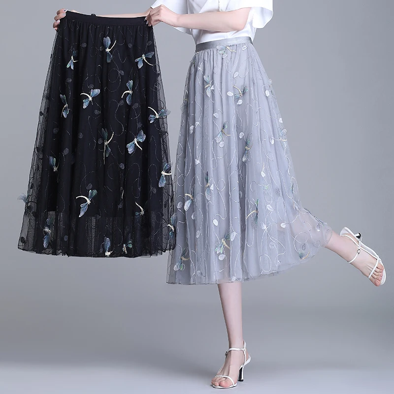 Women Embroidered Mesh Skirts New Summer Elasticity High Waist Tulle Skirt Slim Big Swing Fairy Skirts Jupe Femme 3Colors