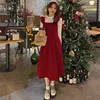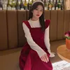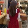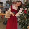 Spring Autumn Red Christmas Skirt Women Kawaii High Waist Tied Midi Long Suspender Skirt Pleated Overalls School Girl Jumpsuits