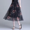 Women Printed Mesh Skirts New Summer Elasticity High Waist Tulle Skirt Slim Big Swing High Quality Fairy Skirts Jupe Femme