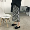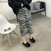 Stripe Women Midi Knitted Skirt Female High Waist Vintage Pleated Skirt Women Knitted Straight Animal Print Ladies Skirt