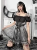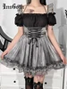 InsGoth Fairy Grunge Silver Lolita Overalls Goth Aesthetic Lace Up High Waist Corset Skirts Gothic Punk Halter Skirt Streetwear