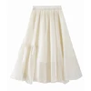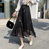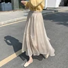 Qiukichonson 2022 Spring Summer Chiffon Skirt Women Silk Skirt Korean Casual High Waisted Asymmetrical Midi Long Skirts rok