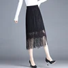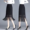 Women Black Lace Pleated Skirt Korean Fashion Slim Sexy High Waist Skirt Spring Summer Fairy Fringe Skirt